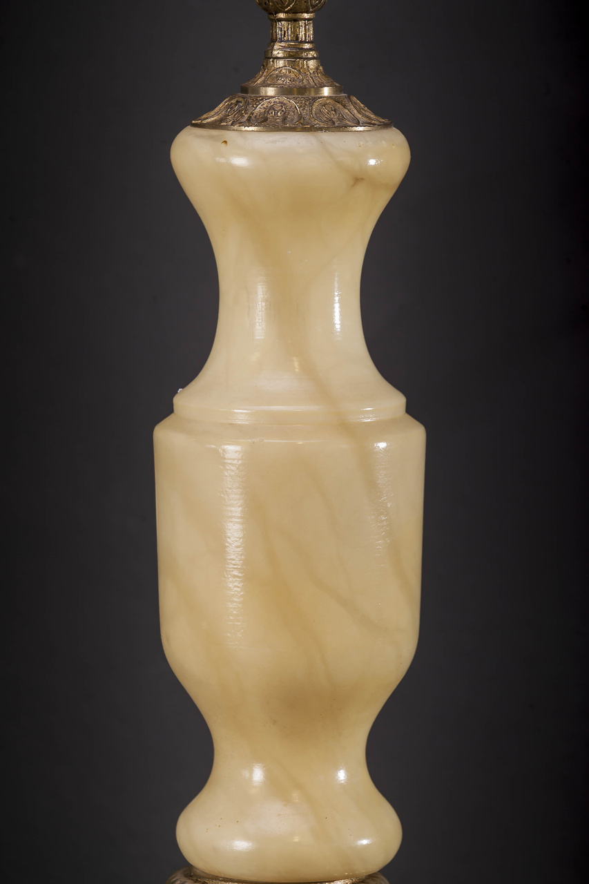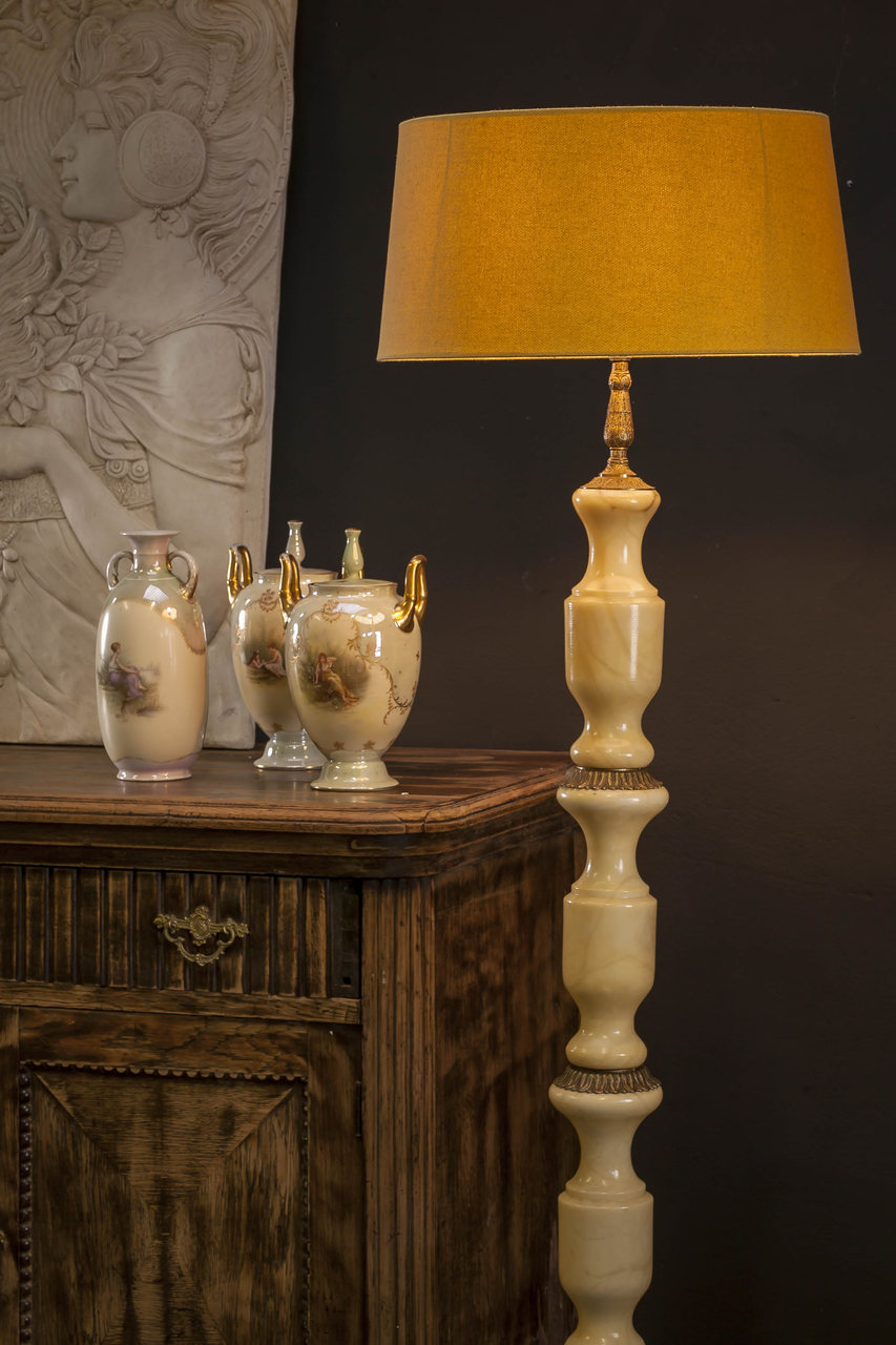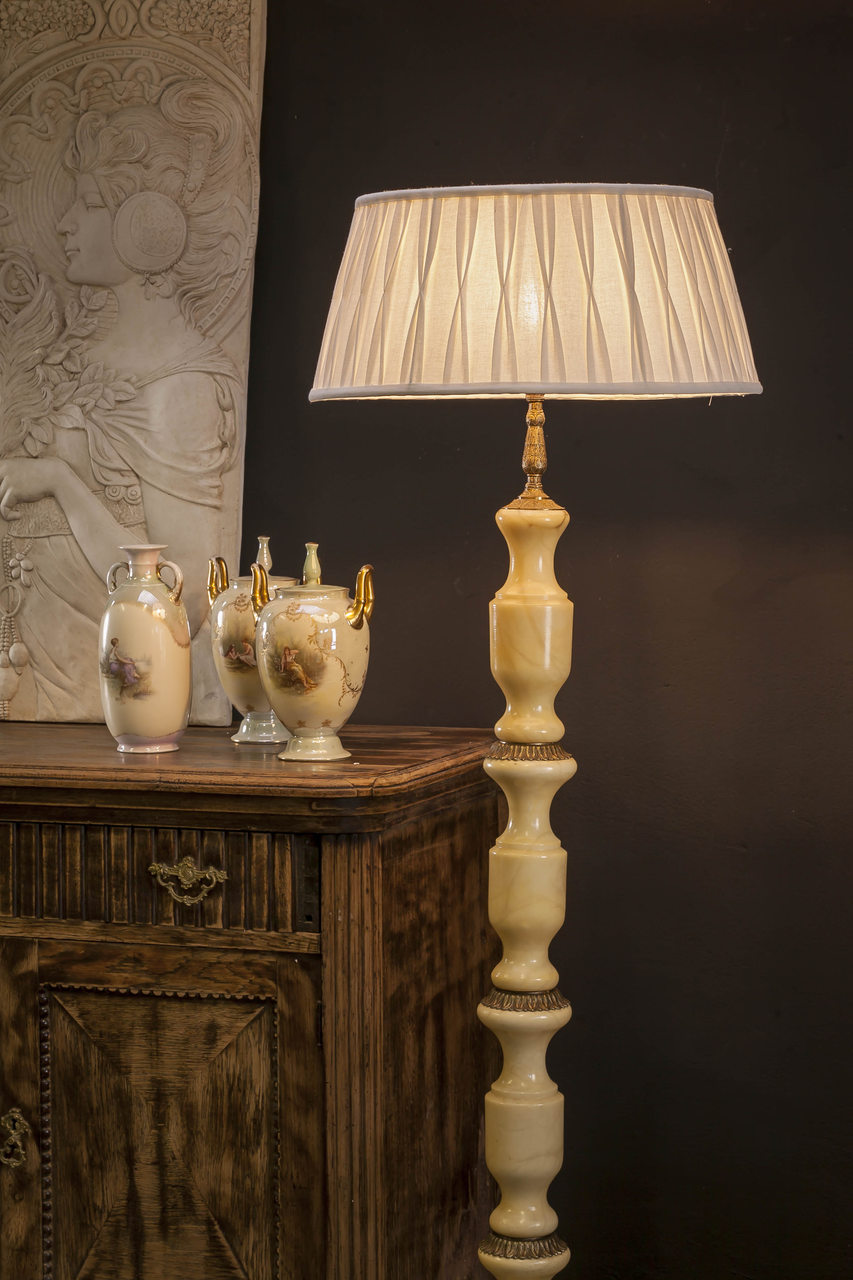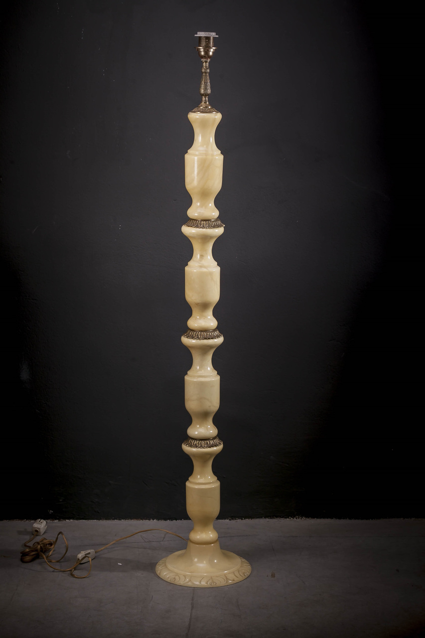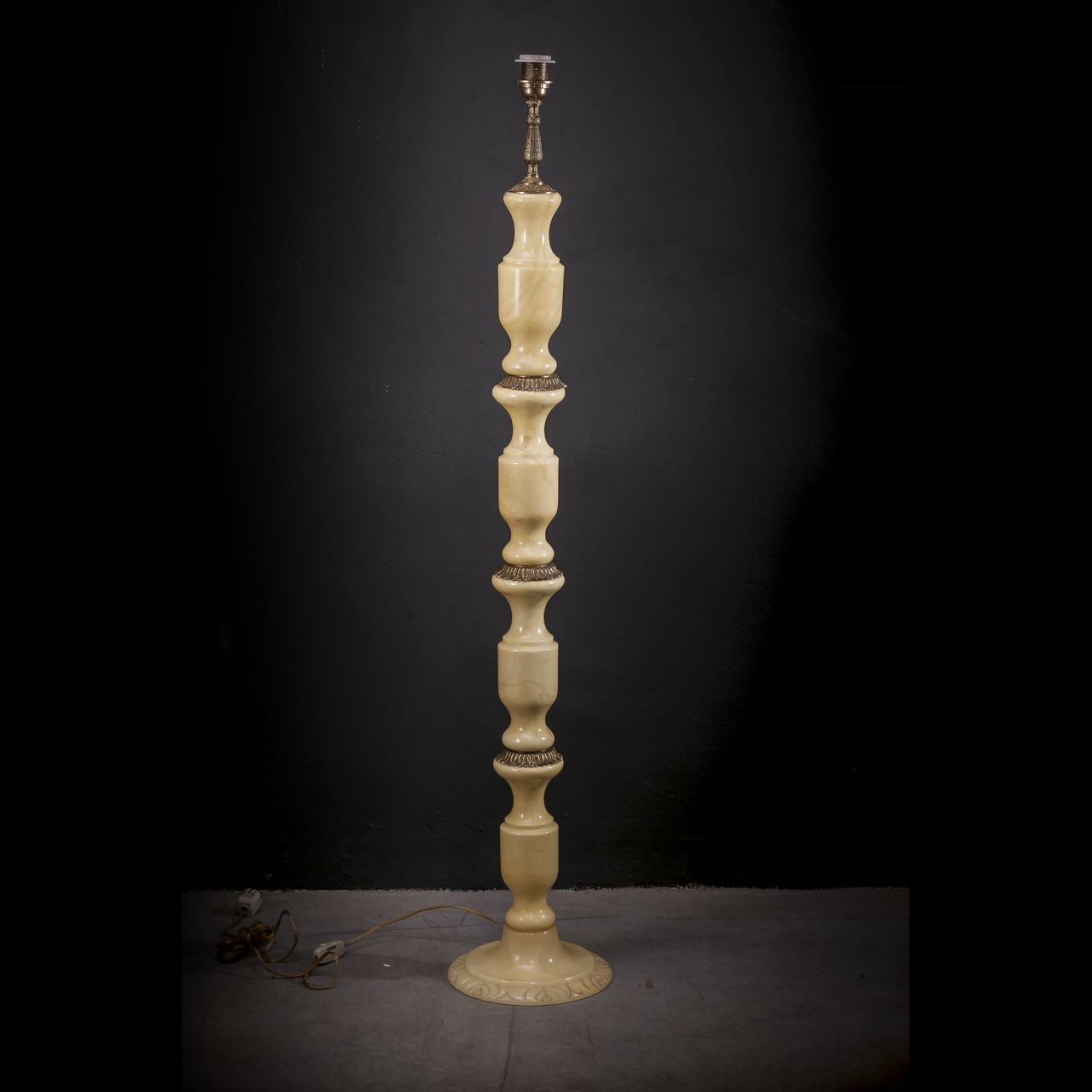 Lampa podłogowa wykonana w całości z kamienia onyxu.
