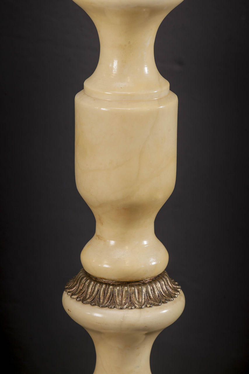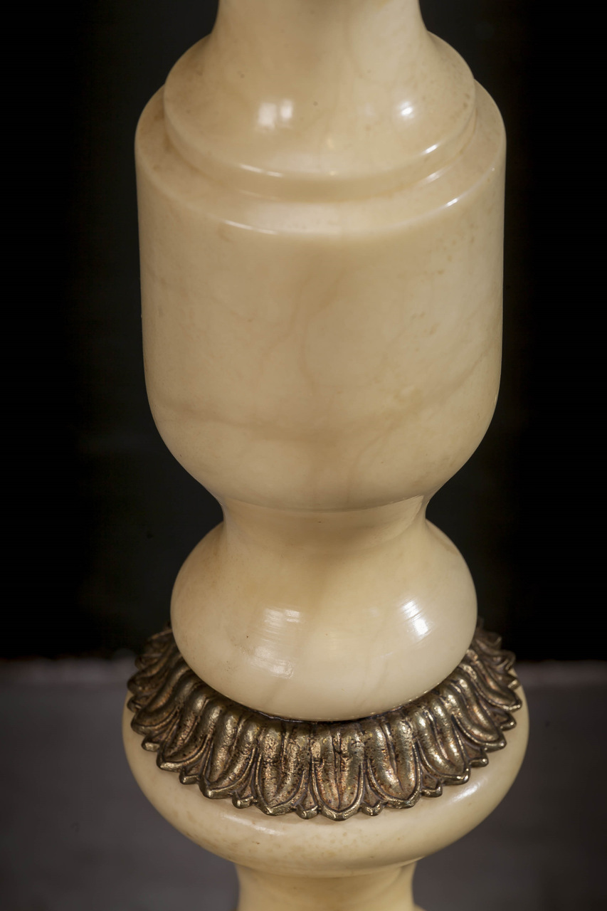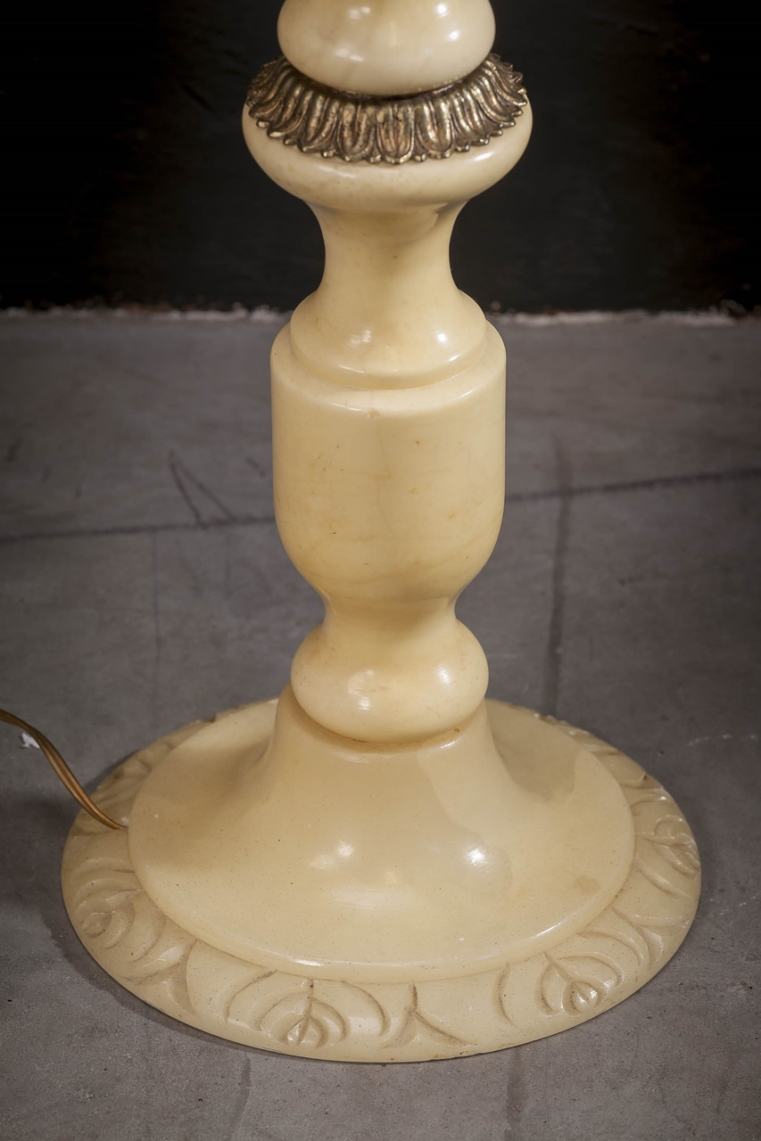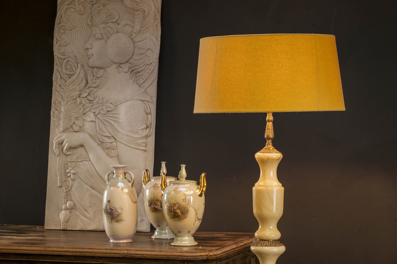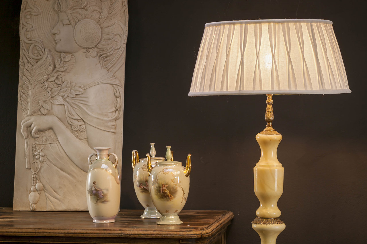 Lampa podłogowa wykonana w całości z kamienia onyxu.