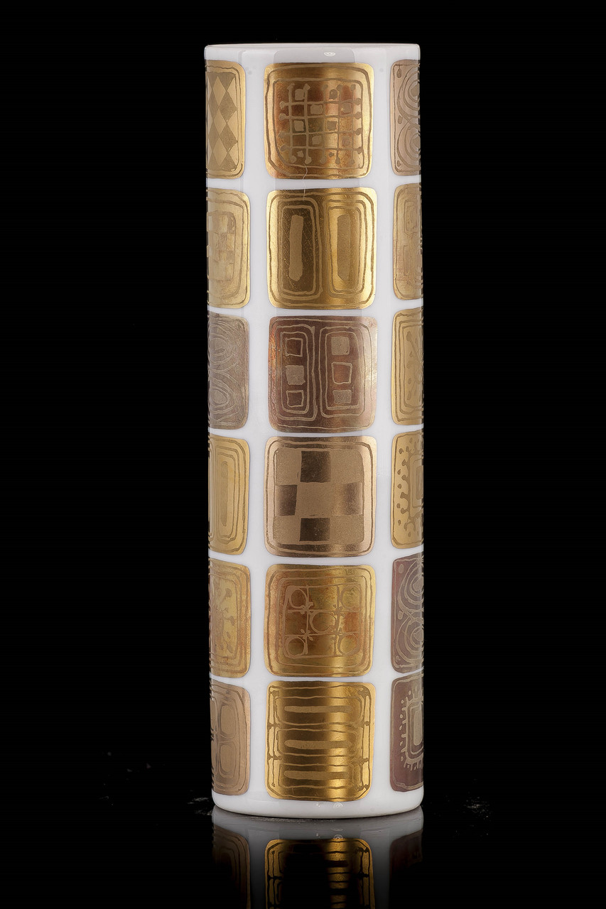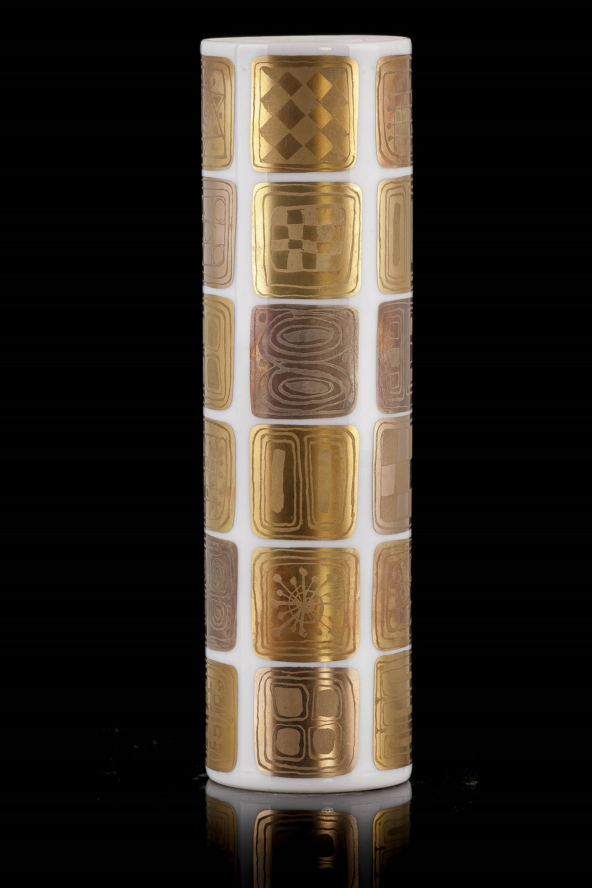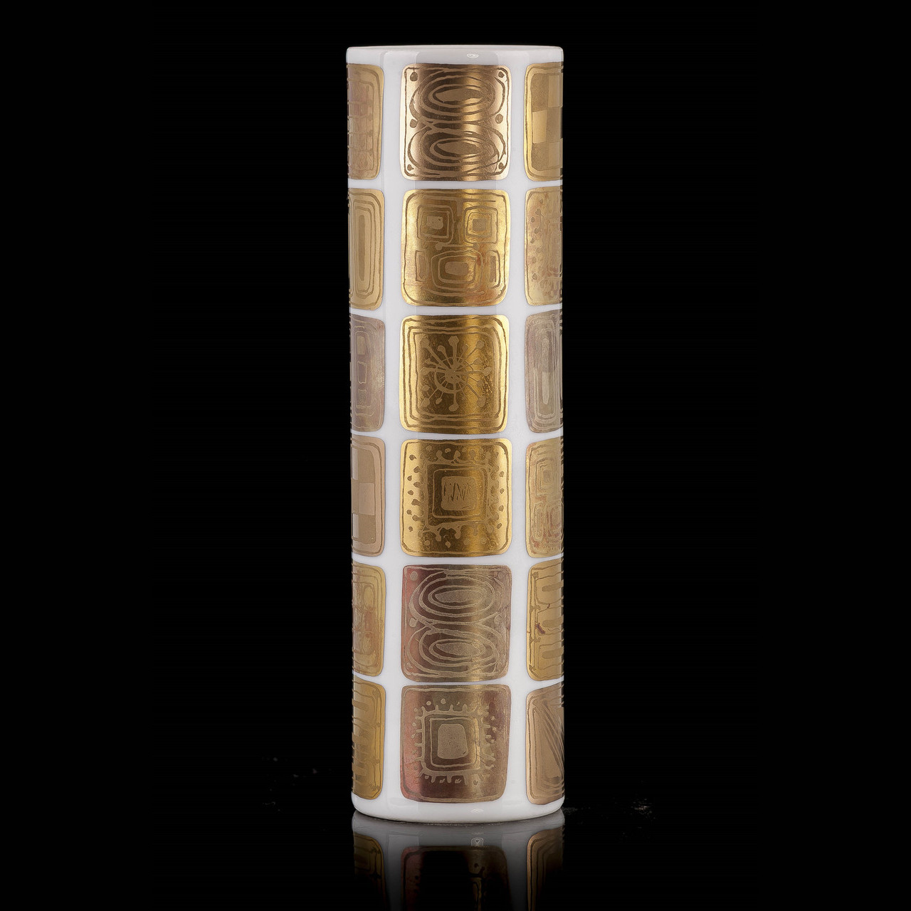 Porcelanowy wazon ,wyprodukowany w manufakturze Rosenthal. Malowany prawdziwym złotem w motyw kwadratów umieszczanych na białej porcelanie.